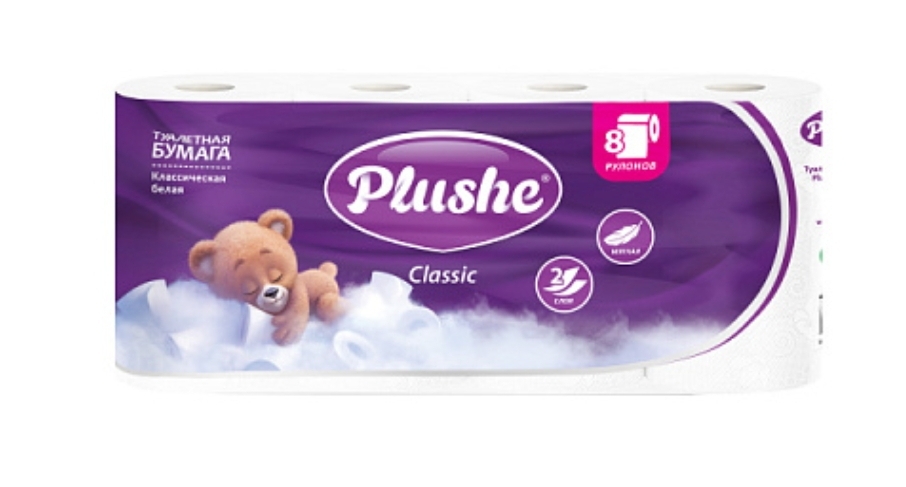 ТУАЛЕТНАЯ БУМАГА ПЛЮШЕ 2 СЛ. 8 РУЛ.\8 УП.